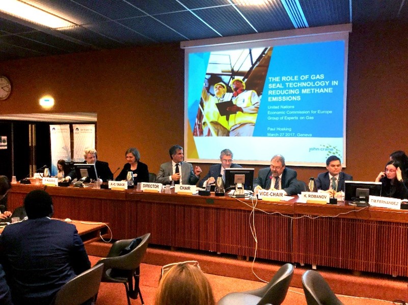 Em 2019, membros de nossa equipe foram convidados para um painel da Organização das Nações Unidas (ONU) para mostrar como as tecnologias desenvolvidas pela John Crane estão reduzindo as emissões de metano em setores da indústria de gás natural. O painel tinha como objetivo discutir e examinar o papel crítico que o gás desempenhará no alcance dos Objetivos de Desenvolvimento Sustentável da organização internacional.