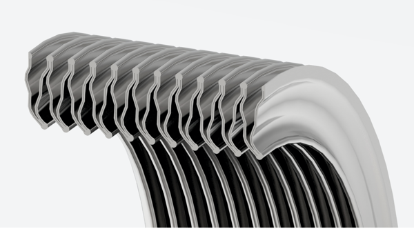 Figure 4: A laminated metal bellows offers a significantly lower spring rate compared with single-ply plates of 2X the thickness. This bellows type is used in higher pressure applications.