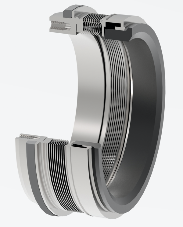 Figure 1: High-temperature welded metal bellows assembly with flexible graphite secondary seals.
